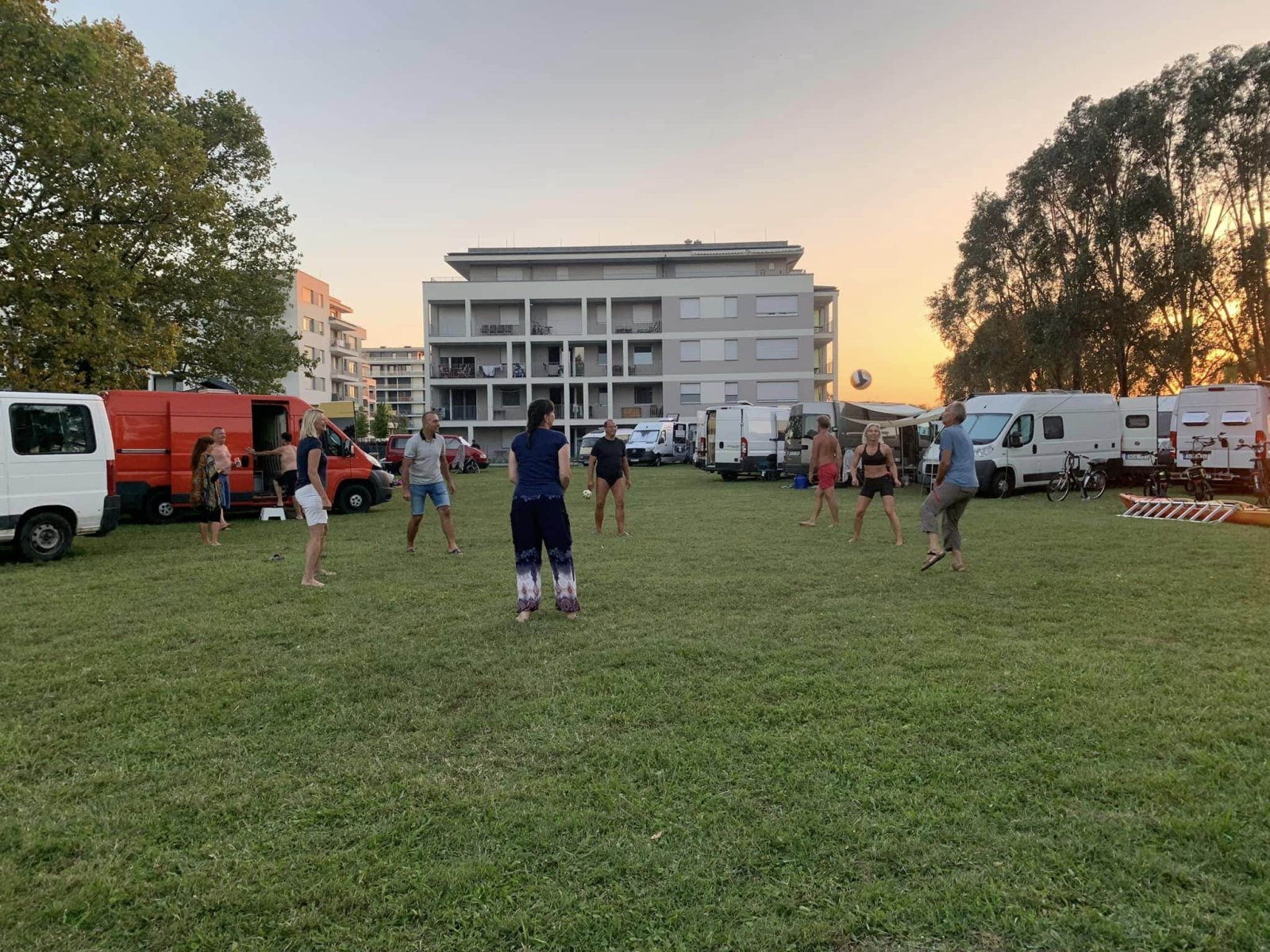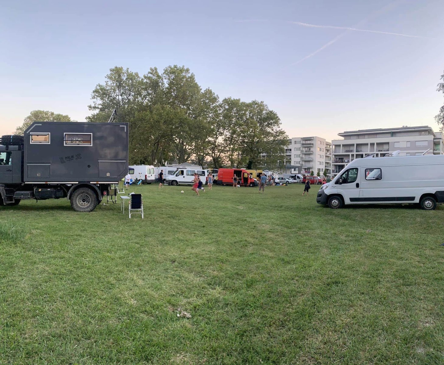 a területen tetszőleges helyre lehet parkolni, de kérjük vegye figyelembe, hogy más is szeretne elférni. Lehetőleg a többiekkel párhuzamosan álljon, ne keresztbe, és ne a közlekedő útvonalakra. Az elektromos csatlakozás a fák közötti részen van, nagyjából a terület közepén. Kb. 50 méter a maximális távolság a legtávolabbi ponttól.